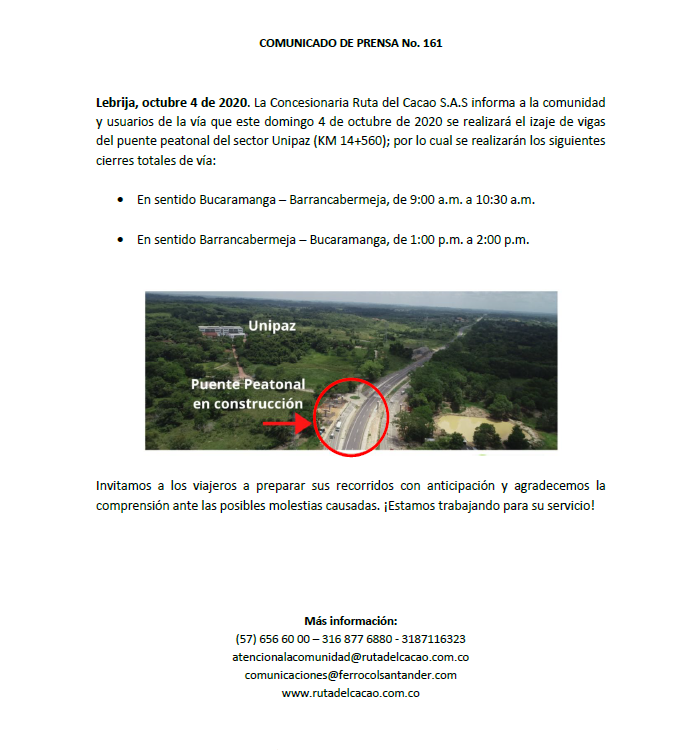 COMUNICADO DE PRENSA NO. 161